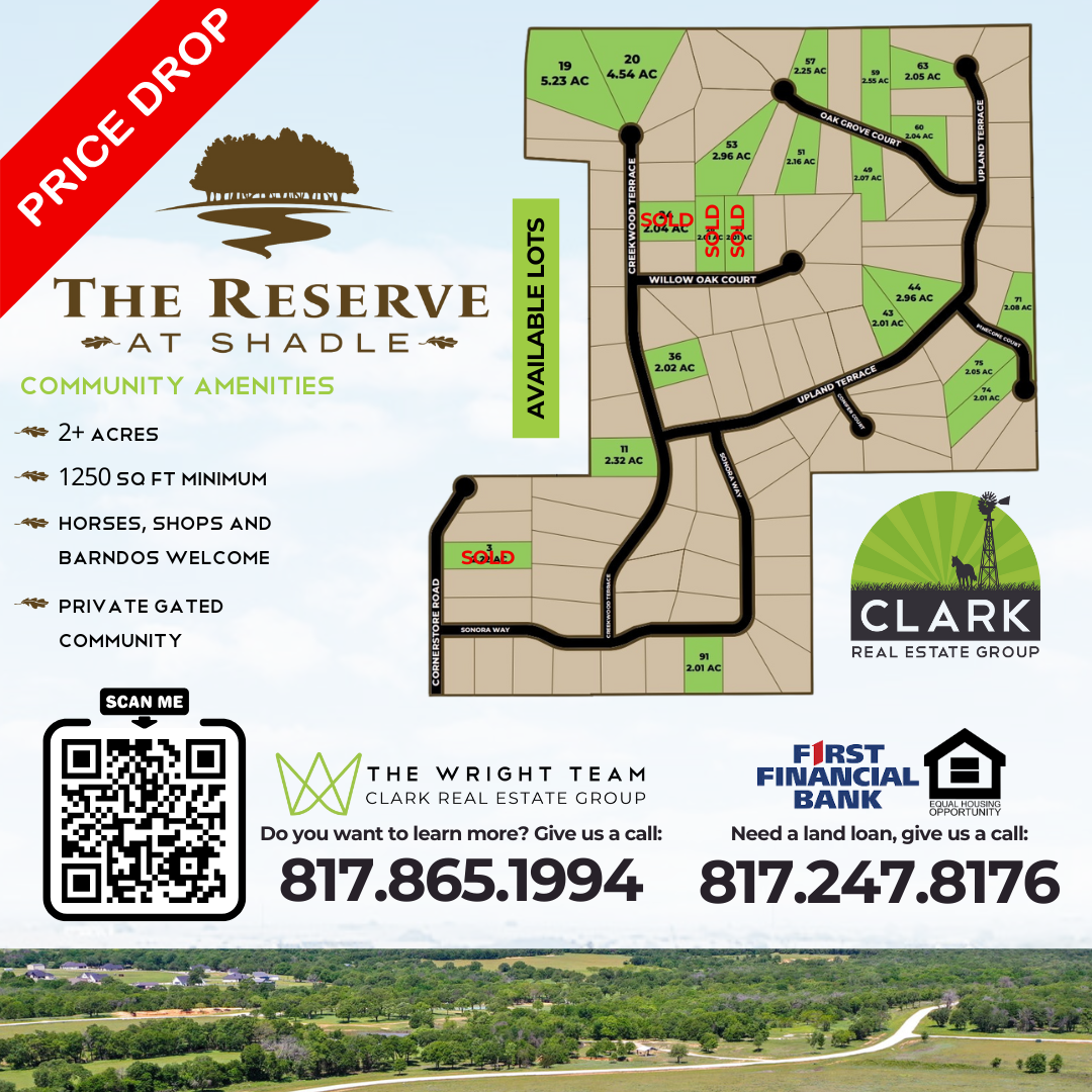 Welcome to The Reserve at Shadle in Poolville- a stunning gated community with homesites starting at 2 acres. With beautiful views and plenty of trees, The Reserve at Shadle offers a serene and picturesque setting. Bring your animals and enjoy the privacy of this gated community. You don’t have to worry about heavy traffic because there aren’t any thru streets! Enjoy taking walks, bike riding or riding your horses through the community with picnic sites and ponds nearby! You can Bring your own builder! Shops and Barndos are allowed and the minimum build requirement is only 1250sqft! This is the perfect community to get you out in nature, all while having modern conveniences nearby. The Reserve at Shadle is only 20 minutes to downtown Weatherford and 20 minutes to Springtown. Don't miss out on this amazing opportunity to own a piece of Poolville paradise!